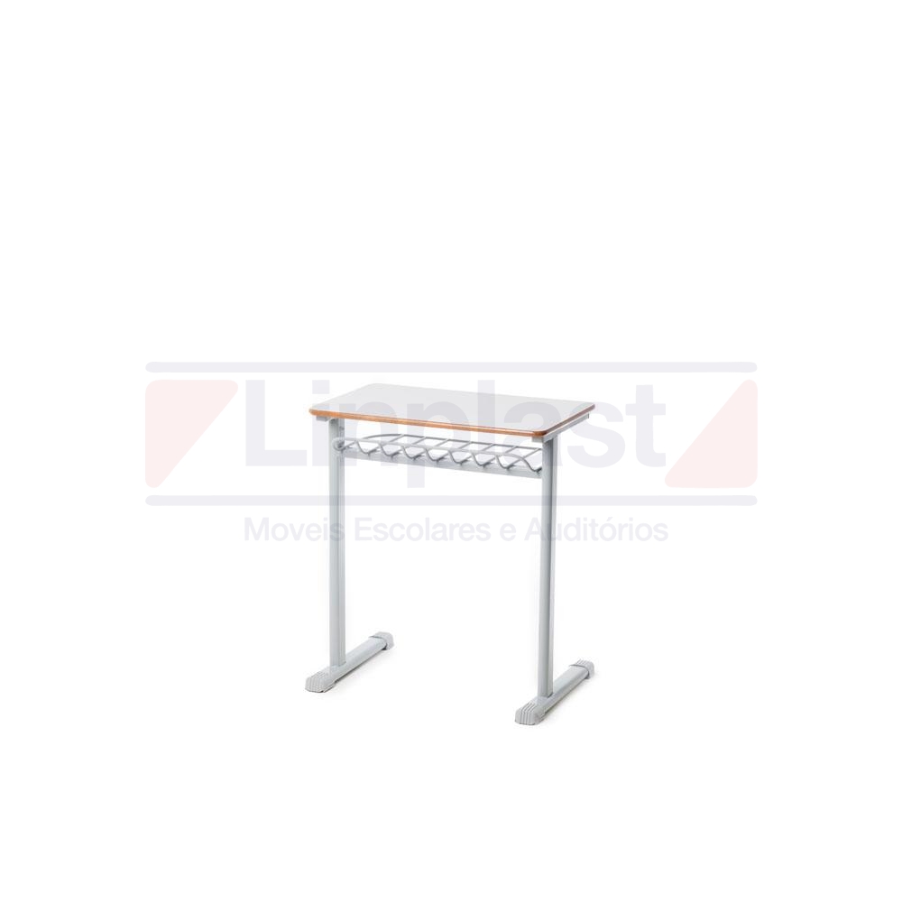 Conjunto composto por uma cadeira e uma carteira, todas as partes metálicas unidas por solda mig, estrutura metálica da carteira confeccionada em tubo 29 x 58 chapa 18 (1.2 mm) gradil porta-livro abaixo do tampo em ferro maciço seção quadrada. Tampo em MDF usinado 180° sem cantos vivos, revestido em fórmica texturizada 0.8 mm cor a escolher, acabamento nas laterais em verniz (à prova de vandalismo). Apresentar na proposta relatório ou laudo de conformidade do conjunto com toda a ABNT14. 006/2008, emitido por laboratório credenciado ou órgão acreditado pelo INMETRO para mobiliário escolar. Cadeira empilhável em tubo 7/8 chapa 18 e 16 (1.2 e 1.5 mm) empilháveis com assento e encosto em polipropileno colorido (plástico), acabamento das terminações dos tubos com seis ponteiras, duas na parte superior e quatro nos pés, todas coloridas com as mesmas cores dos assentos e encostos, metal tratado contra ferrugem, pintura epóxi (a pó) de cor a escolher prata ou preto. Cores do assento e encosto para escolher: Amarelo lima, kiwi, azul marinho, azul francês, rosa choque, vermelho, laranja e uva.